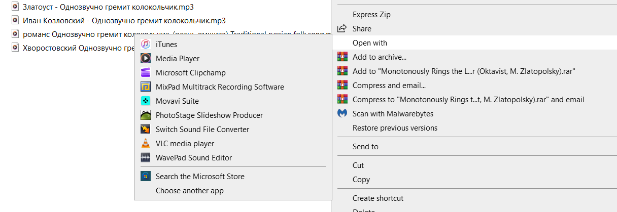 Do the same thing as above with opening up the classic Russian folk song, (The Lonely Bell Rings)only now you are to chose among a selection of programs that will open the pdf format.