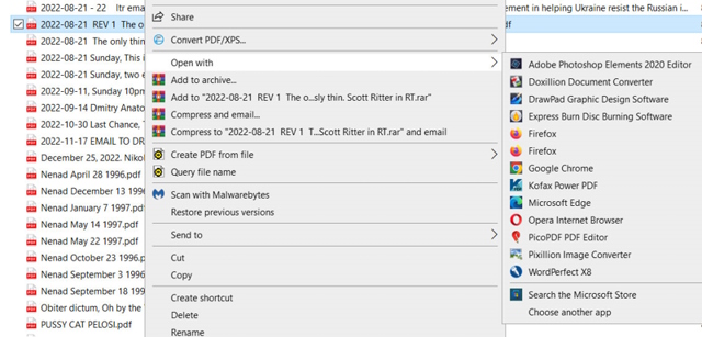 Open pdf with (select) If you do not have a pdf program you can always open with MS Edge and I think MS Word will open such file tool.